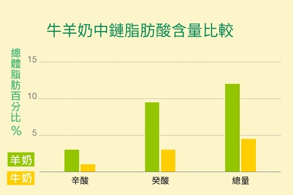 不僅僅好消化,也因為含有較多中鏈脂肪酸,使得羊奶更能被人體有效利用,而且低負擔,尤其對新生兒來說,營養素當中,脂肪是很難消化吸收的部分,而嬰兒對中鏈脂肪酸(MCFA)的消化吸收要比長鏈脂肪酸(LCFA)來的有效率。